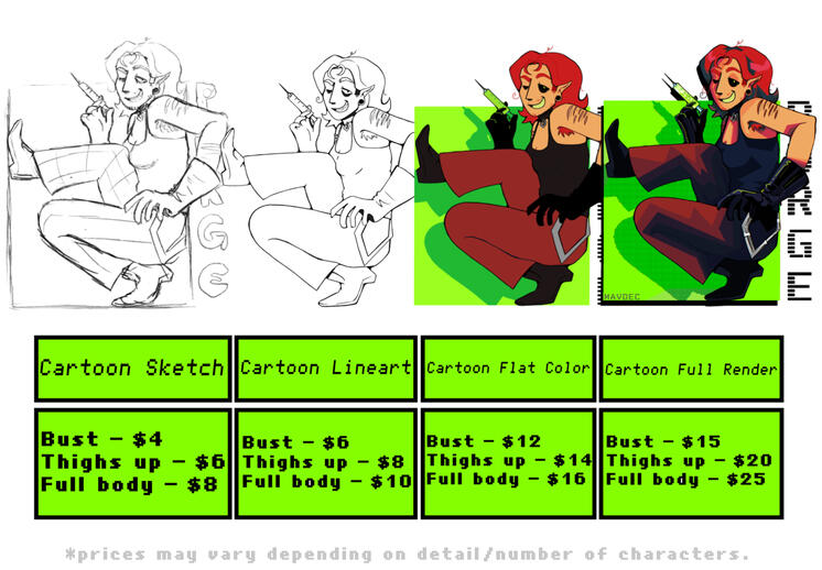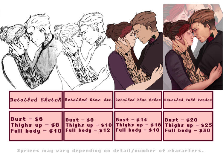 Commissions are currently closed.Peek at the prices and come back again some time soon!